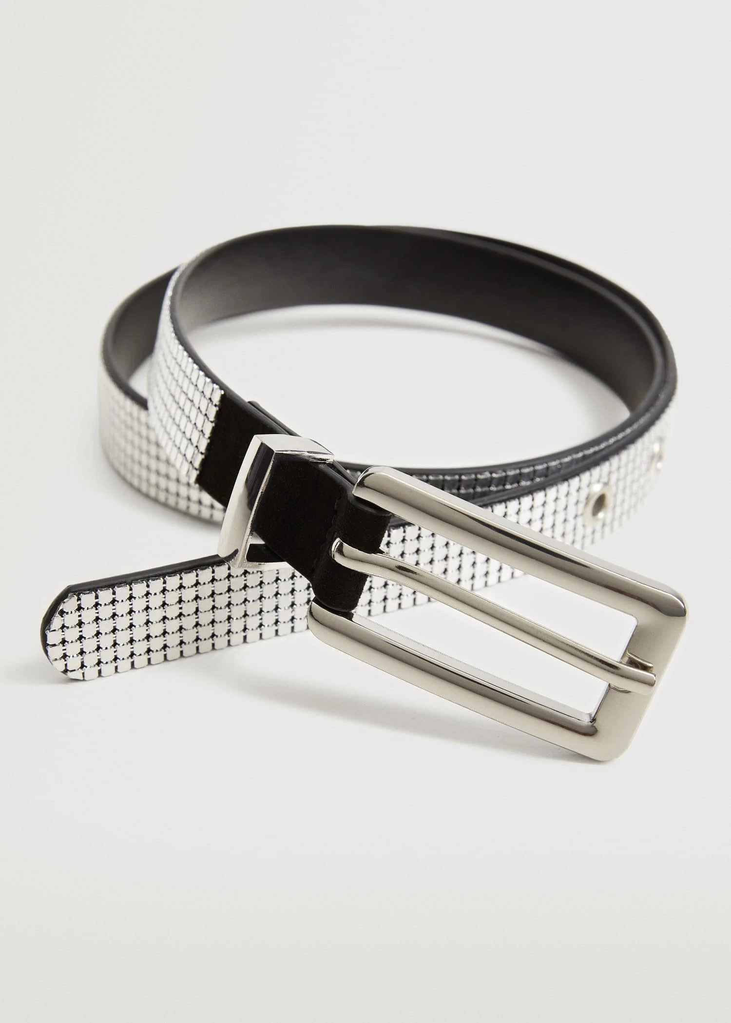 Composition: 50% aluminium,50% polyester. Lining: 100% polyurethane. Buckle: 100% zinc